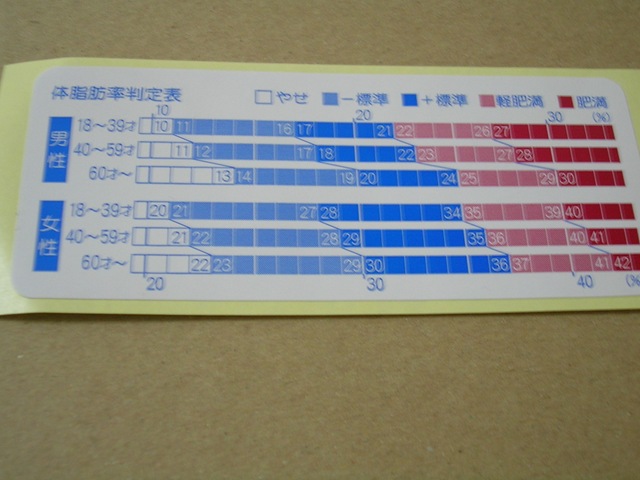 TANITA還很貼心的給了一張男、女性體脂標準表